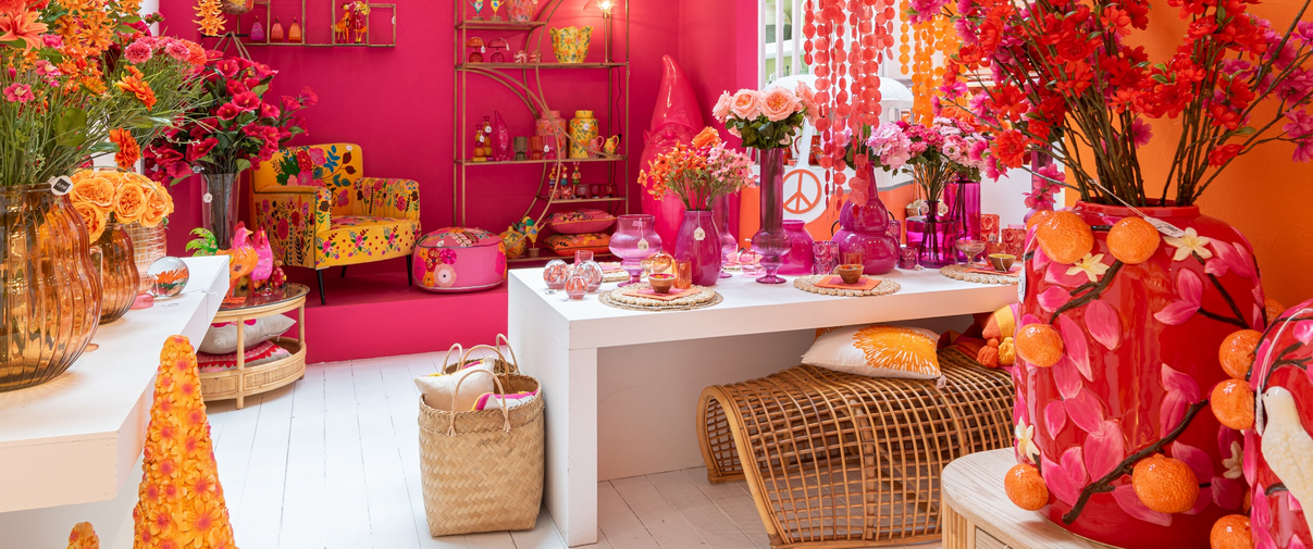 Dieser runde Pouf aus der „Dia de las Flores“ Inspirationskollektion von J-Line
