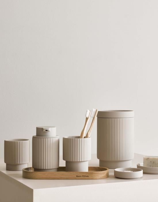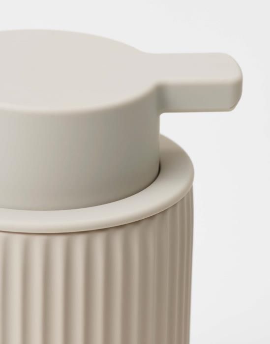 Der Seifenspender hat ein weiches, rundes Design und besteht aus einer raffinierten Rippenoptik mit einer weichen Haptik. Der Keramikspender wird in einem speziellen Verfahren handgefertigt, wodurch eine einzigartige Form entsteht. Natürlichkeit in Form und Beschaffenheit!