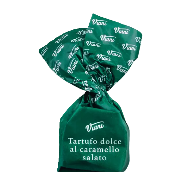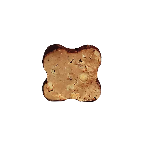 Im hellen Schokoladentrüffel sind Karamell und gesalzene Haselnussstückchen verarbeitet. Der zarte Salzton unterstreicht die gute Schokolade.
